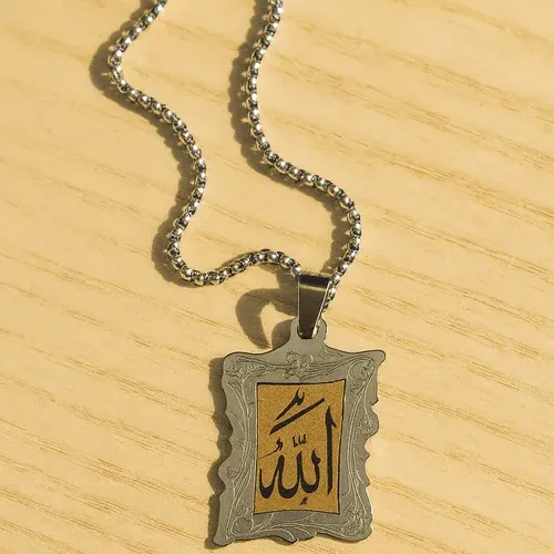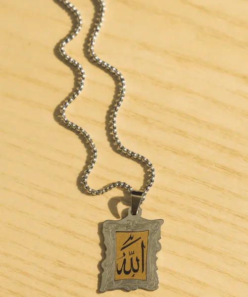 The Allah Name Pendant Necklace features a stunning two-tone pendant with “Allah” (الله) engraved in elegant Arabic calligraphy. Designed with a durable silver-tone beaded chain, this necklace blends faith and fashion for daily wear or special occasions.