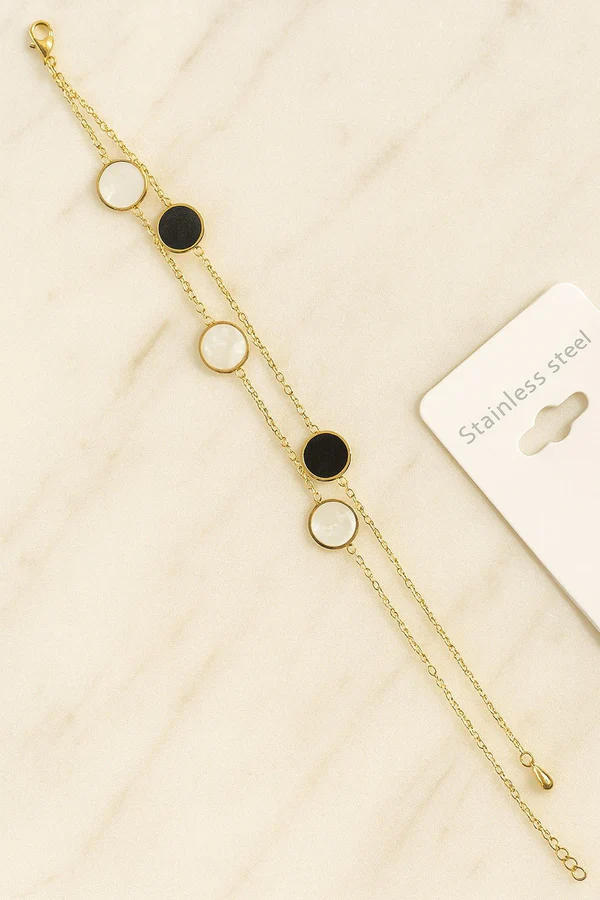 Dual-Tone Round Charm Bracelet – Alternating white & black enamel circles for a chic, modern design.